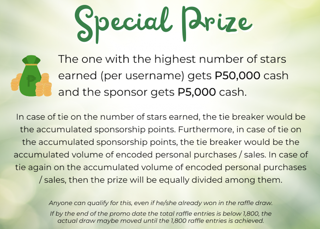 3. You can sell the promo items through your replicated website, the raffle entry will be credit to you.